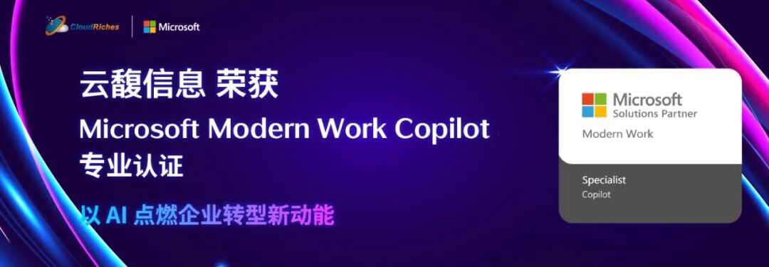 在 AI 浪潮席卷全球之际,技术不再只是工具,而是驱动组织进化的灵魂。作为微软长期深耕的合作伙伴,云馥(CloudRiches)正式宣布取得 Microsoft Modern Work Copilot Specialization 认证。这项殊荣不仅彰显云馥在市场的领先地位,更象征我们在协助企业迈入 AI 时代的进程中,已具备国际级标准的专业能力与丰富实务经验。不仅是导入技术,更是企业转型能力的全面升级Modern Work Copilot Specialization 是微软为合作伙伴设立的高标准专项认证,仅授予在 Microsoft 365 Copilot、Copilot Studio 及相关延伸应用领域中,展现卓越顾问实力、完整部署能力与成功客户案例的合作伙伴。此外,云馥亦在微软 FY26 Copilot Immersion Briefing Train-the-Trainer(TTT)Partner Enablement Program 培训讲师赋能项目中,从中港台 40 多家伙伴中脱颖而出,成为台湾唯一获评为金牌讲师的合作伙伴。通过多项专业资格与能力认证,不仅展现云馥在 Copilot 导入与企业培训领域的深厚实力,也体现我们在本地化培训与伙伴赋能方面的专业经验。云馥除具备应对复杂技术架构与部署需求的能力,更能从企业经营与组织发展视角出发,结合变革管理策略与用户采用推动机制,协助企业员工顺利适应新一代智能工具。我们深信,真正成功的 AI 转型,不只是技术的导入,而是让每一位工作者在日常工作中实际感受效率提升与价值创造。云馥执行长 桂梓捷:以专业与热忱,携手企业迎向 AI 新时代云馥执行长桂梓捷表示:“AI 正在重新定义工作的形态与价值。此次获得微软专项认证,对云馥团队而言,不仅是专业能力的国际肯定,更是一份责任与承诺。我们不只协助企业部署 Copilot,更致力于陪伴企业将 AI 深度融入组织流程与文化之中,转化为可持续成长的动能。我们将持续与微软紧密合作,让 AI 应用从策略规划到实际落地,真正成为企业竞争力的一部分。”展望未来:启动现代 AI 办公的新篇章云馥将持续结合微软的前瞻云端技术与团队深厚的产业经验,从生产力优化、流程创新到智能决策,全方位守护客户的转型旅程。我们不只是技术供应商,更是企业在数字化浪潮中,最值得信赖的战略伙伴!