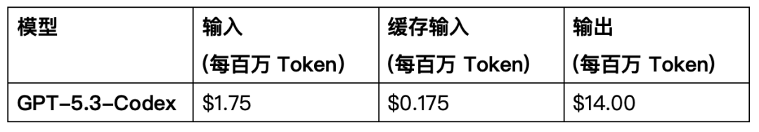 ✨GPT‑5.3‑Codex 价格详情